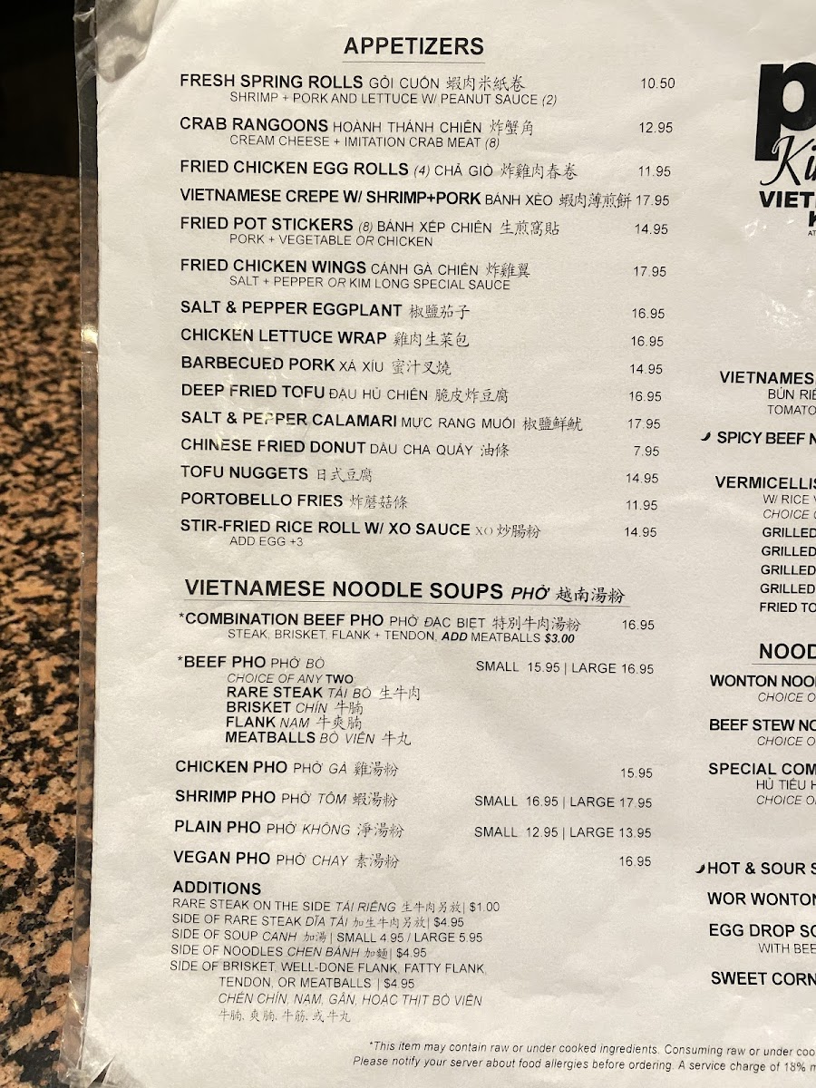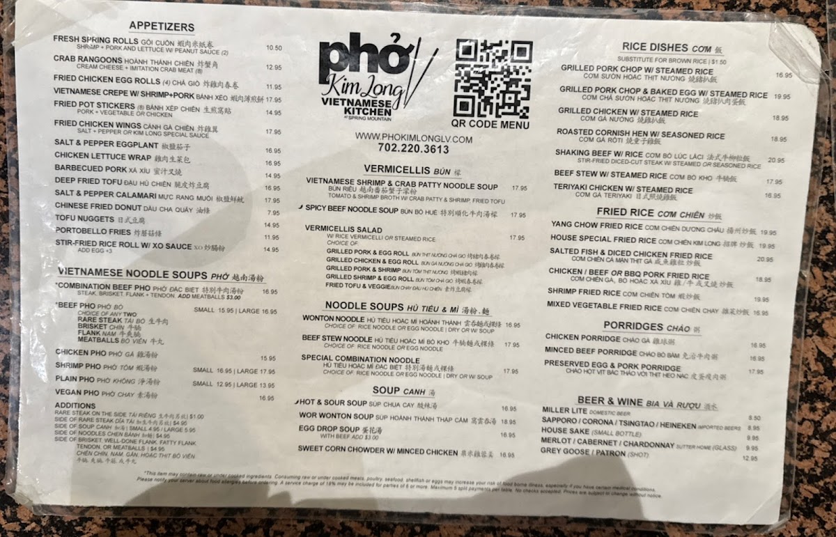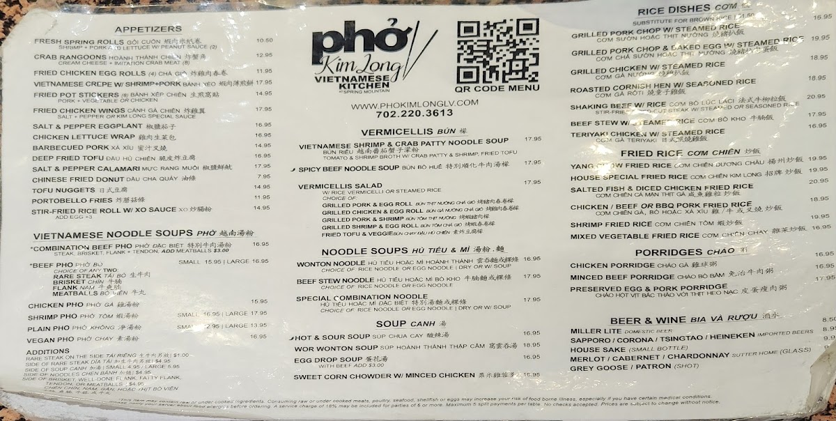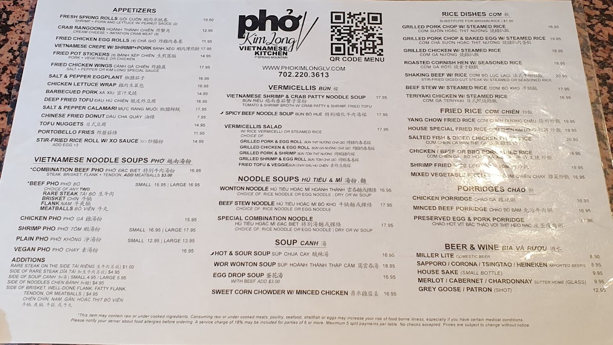 Welcome to Phở Kim Long Restaurant, your go-to destination for authentic Vietnamese cuisine in the heart of Las Vegas. Located at 4023 W Spring Mountain Rd, this charming restaurant captures the essence of Vietnamese dining with its enticing menu and warm, inviting atmosphere.